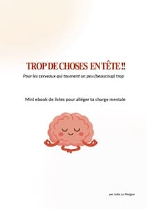 Le Mini ebook de listes pour alléger ta charge mentale Des listes toutes prêtes pour t’apaiser, t’organiser et arrêter de tourner en rond dans ta tête. Tu as l’impression que ton cerveau est une page avec 50 onglets ouverts en…